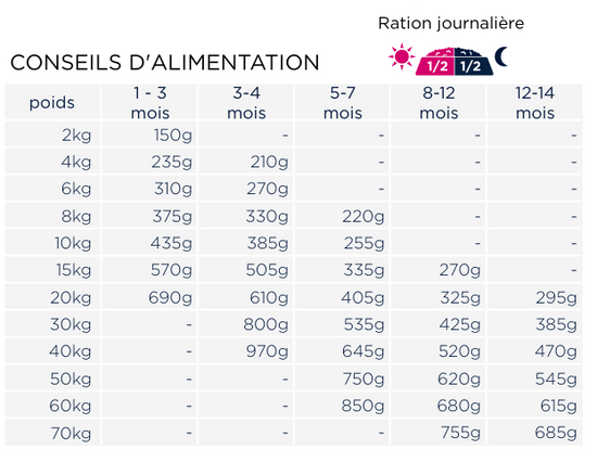 Faites une transition progressive sur 7 à 10 jours en mélangeant les nouvelles croquettes pour chiot aux anciennes pour éviter les troubles digestifs.